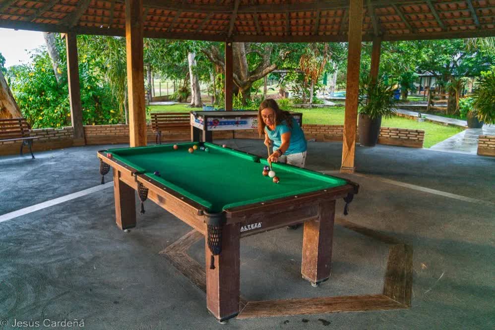 La tarde la pasamos dando paseos por los alrededores y echamos una partida de billar americano, Carmen ni idea, pero cuela muchas bolas, Jesús …