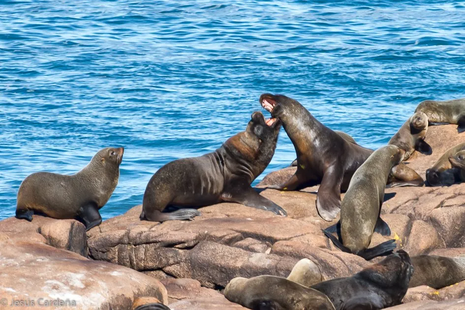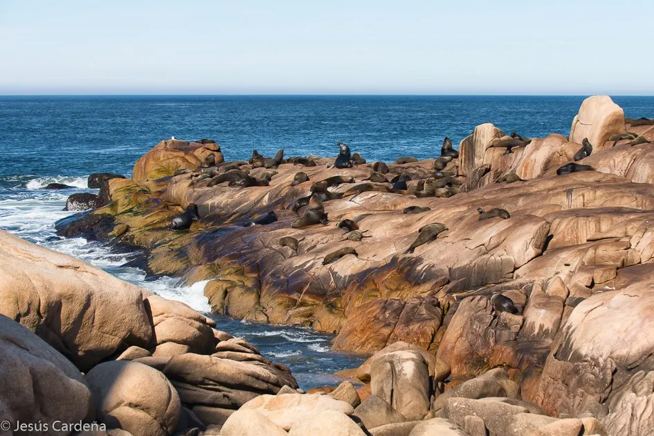 Detrás del faro sobre las rocas encontramos una colonia bastante numerosa de lobos marinos donde nos pasamos medio día mirándolos. A última hora de la mañana iniciamos un paseo de unos 3 km por la costa hacia el norte hasta el inicio de una formación de dunas que mueren en la playa.