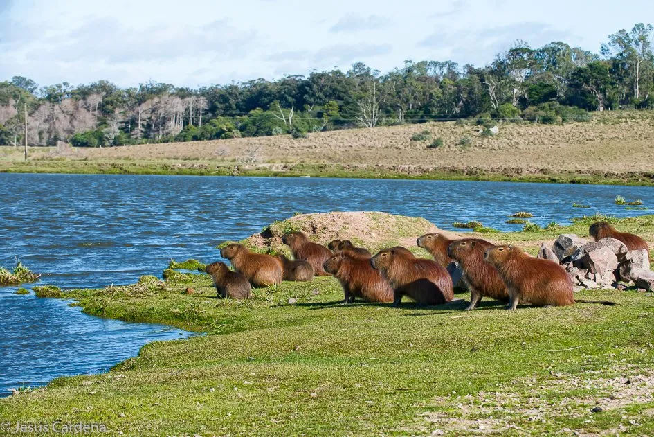 Recorremos el parque visitando una zona donde hay unas pajareras y un pequeño zoo de animales en libertad, libertad limitada por una valla de palos y alambre, en el vimos carpinchos, pavos reales, ñandú, llamas, ovejas, cabras y muuuuchos pájaros en pajareras grandes.