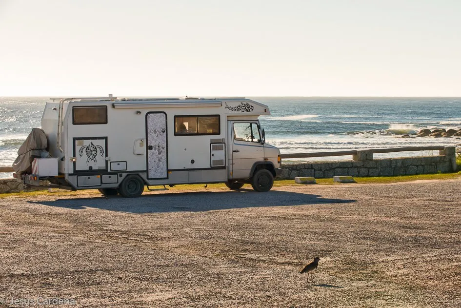 Salimos temprano hacia el pueblo de Castillos donde compramos algunos víveres que nos faltan. Seguimos hacia Punta del Diablo, un pueblo costero muy hippie y turístico, no nos gusta mucho el lugar para dormir y después de un paseo ponemos rumbo al Parque Nacional de Santa Teresa. El Parque está administrado por el ejército, en la puerta de entrada nos recibe un saldado que nos indica que solo podemos dormir en el camping del interior, pero que primero pasemos por el Registro. En el registro no hay nadie y nos vamos hacia el camping, allí descargamos aguas grises y cargamos de agua. En el camping no hay nadie, está todo cerrado, Jesús se acerca al lado de la costa para ver si podemos dormir por allí, aunque sea fuera del camping. El sitio es muy bonito al lado de la arena de la playa con una pasarela, decidimos ir a dormir allí.