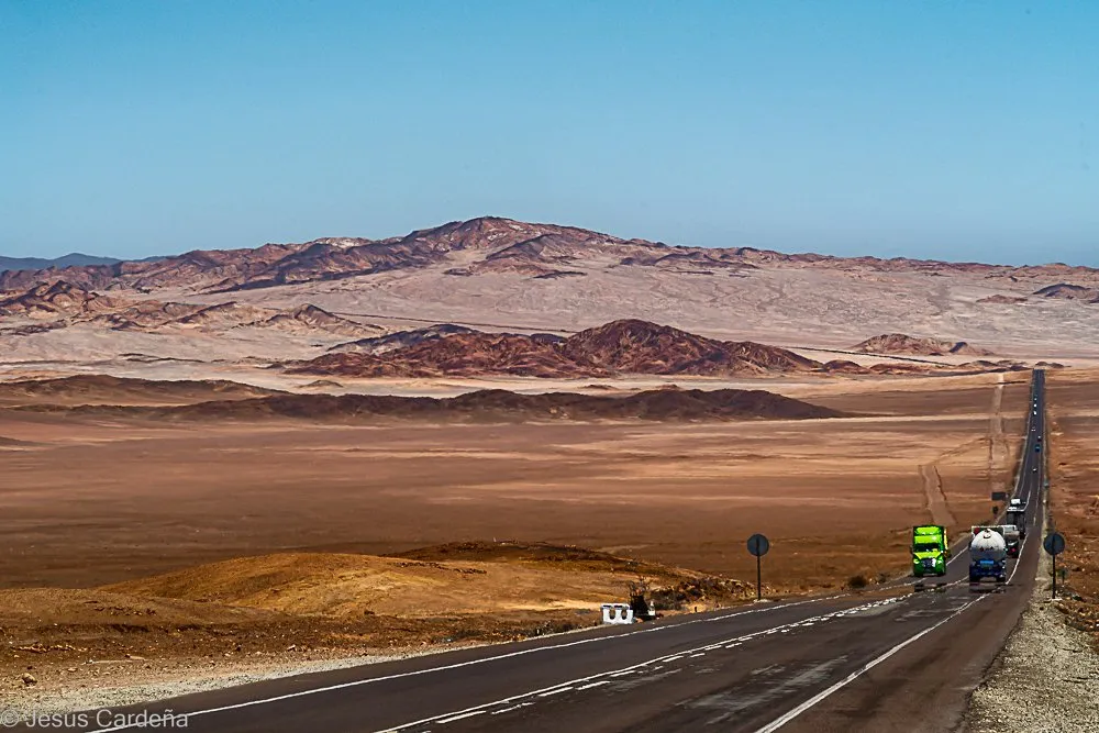 Saliendo pronto tomamos la carretera de la costa, ruta 1. Es una costa abrupta, pocas playas y muy despoblada. Justo a 10 km de Tocopilla hay un corte de carretera a las 14:00 horas y llegamos a las 14:10 así que nos toca esperar hasta las 17 horas que abren, comemos allí mismo y la verdad se nos pasa muy rápido. Pasamos Tocopilla, más grande de lo que creíamos y paramos como a 20 km al Sur muy cerca del mar pero se oía más la carretera que las olas del mar