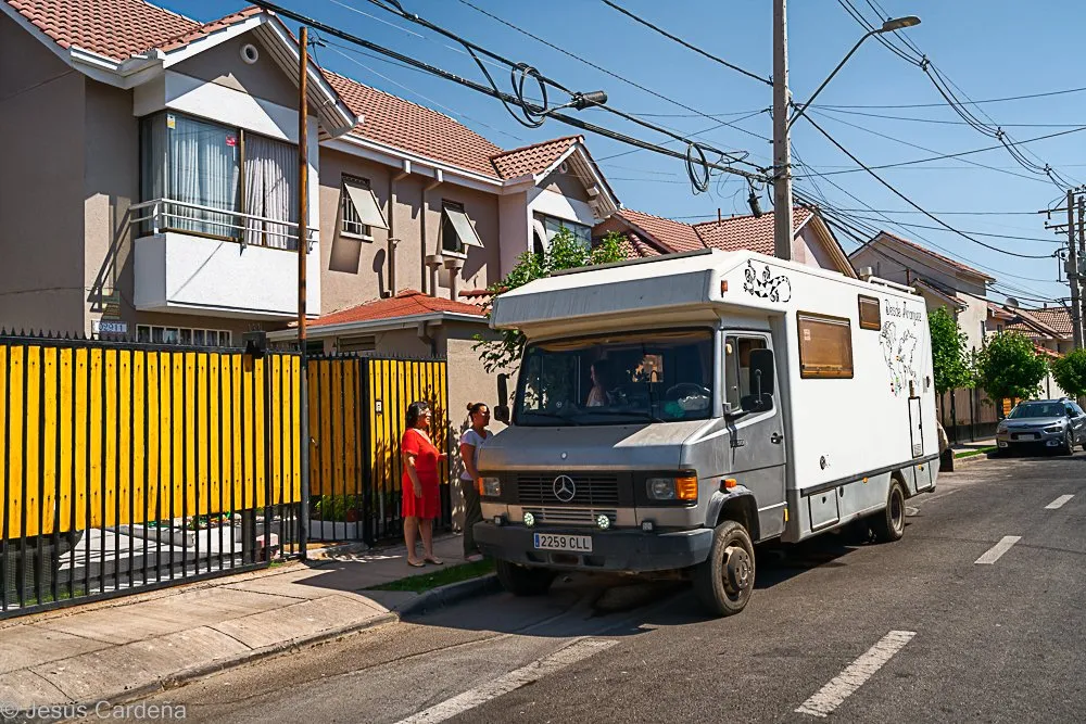 Llegamos a los Andes tarde, nos ponemos en una carretera ancha por la que no paran de pasar coches, no vamos a podernos quedar allí así que tarde nos ponemos a buscar otro lugar y no parece nada bueno, nos pondremos en una calle donde una señora asustada nos dice que ha llamado a los carabineros, Jesús la intenta calmar, ella piensa que somos comerciantes y que dejamos todo lleno de mierda y pises cuando nos vayamos. Al final la mujer se convence gracias también a que el hijo la dice que no somos comerciantes, que somos turistas españoles.