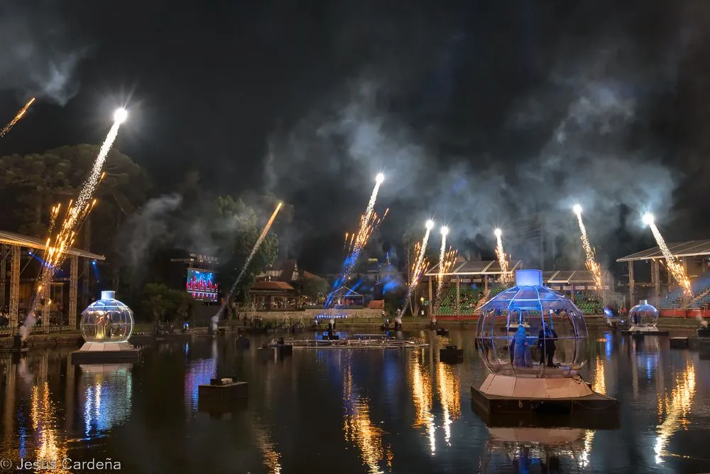 Hoy nos quedamos en la mañana en el camping. En la tarde tenemos un espectáculo en un lago. Es un espectáculo de música de navidad cantadas por cantantes de ópera acompañado de luces y pólvora, muy navideño.