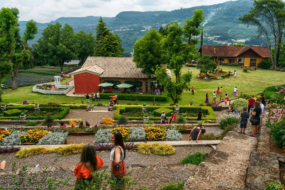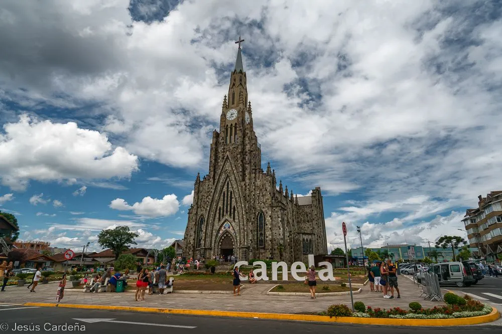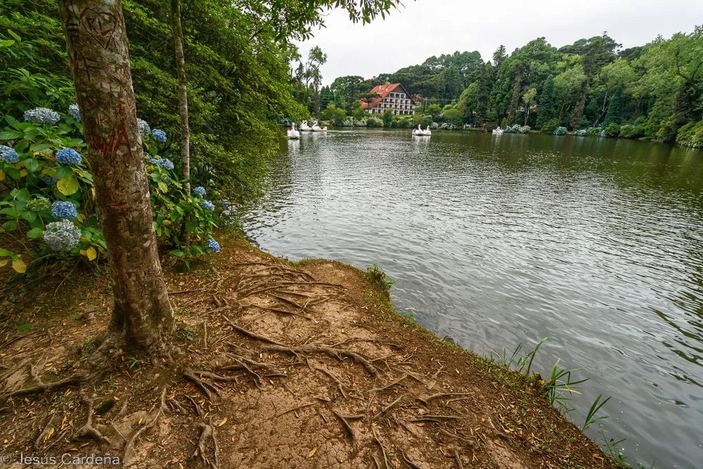 Hemos quedado para hacer el viaje que teníamos pendiente con el bus turístico, nos acercamos al hotel y de allí a la parada. Vamos primero al lago negro, un lago donde la gente va a pasear a sus alrededores y otros alquilan barquitos con forma de cisne. Tras un paseo alrededor del lago nos vamos al Jardín Botánico, es muy grande, pasamos mucho tiempo paseando entre una gran variedad de plantas y flores. El siguiente destino es la Catedral de Gramado, una catedral de piedra, bueno si te acercas ves que es de hormigón con yagas que simulan bloques de piedra. Comemos una parrillada en un restaurante al lado de la Catedral.