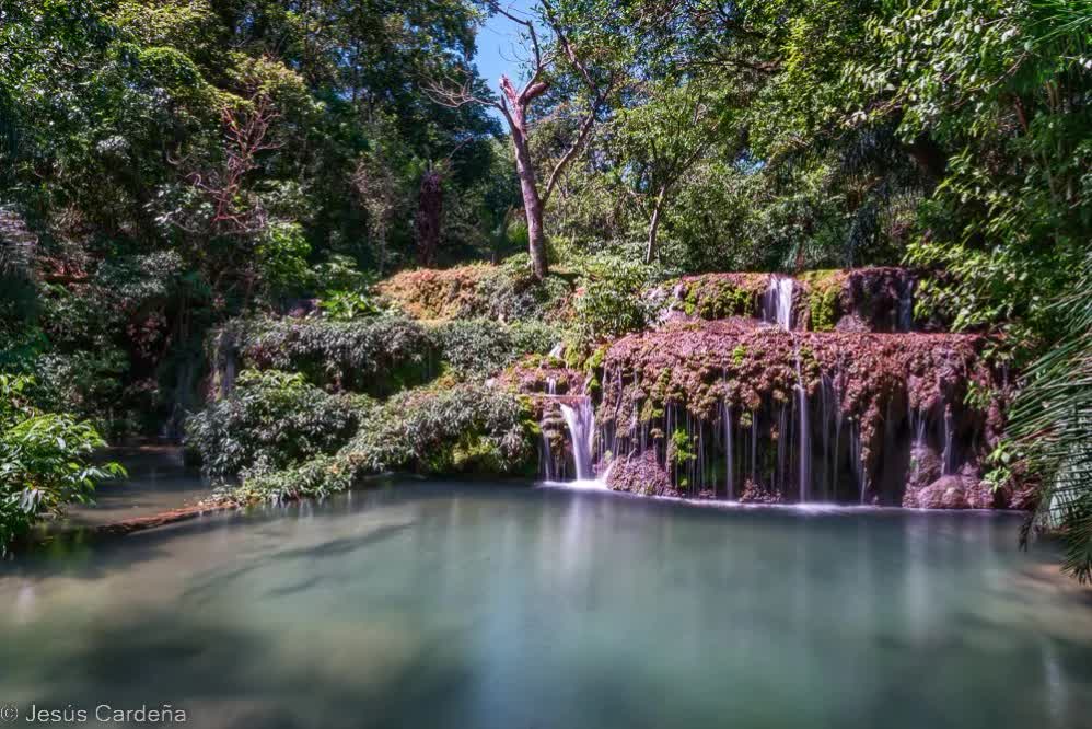 Tras casi dos horas de viaje llegamos a la Estancia donde se encuentra la excursión. Es una finca con buenas instalaciones de baños, zona de picnic, una piscina de agua natural, etc. La actividad consiste en un recorrido circular de aproximadamente 5 km de densa vegetación con gran cantidad de aves y donde se visitan varias cascadas entre la que se encuentra la más alta del Mato Grosso de 156 metros de altura la Cachoeira Boca da Onça. Por desgracia hay sequía y las cascadas tienen poco agua.
