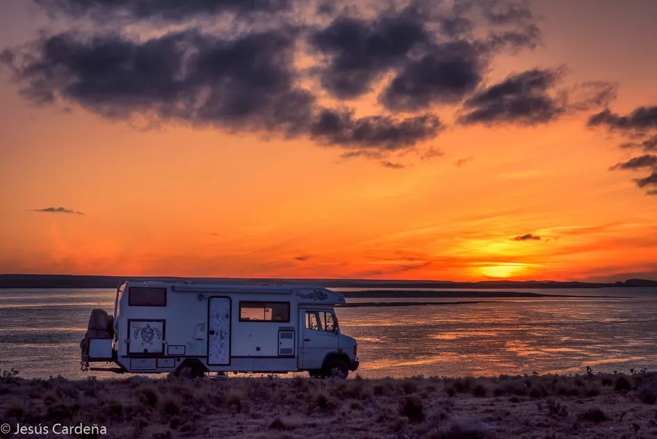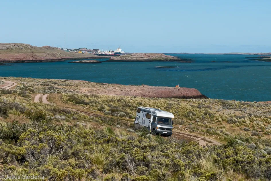 Día de carretera, bajamos a Puerto Deseado, los primeros 100 km la carretera está hecha un desastre, corre justo a ras de la costa, tiene unas vistas muy bonitas pero muy poco cuidado, mucho plástico y basura. Pasamos también por un campo de pozos de petróleo, Carmen nunca los había visto y le resultó muy curioso. También por una plantación de molinos de viento, muchísimos y en hileras.