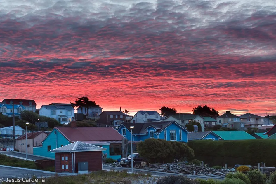 Damos una vuelta por allí, está todo cerrado, es sábado pero no hay nadie en la calle, hace un día soleado, calor y sin aíre, dicen que muy raro, pocos días así tienen al año. Volvemos al hotel y nos espera Cathy, de la agencia, que nos da todos los datos de nuestro viaje y nos dice que mañana salimos a las 8 para nuestro primer destino, Bleaker Island