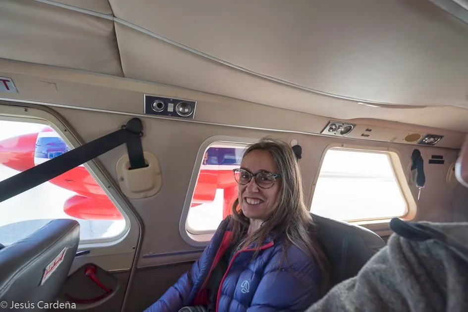 Última noche, desayuno y enseguida nos viene a buscar el taxista, nos lleva al aeropuerto para llegar muy pronto, pero enseguida vemos que se tarda bastante, el control policial es meticuloso. Casi una hora y por fin nos toca, te hacen esperar en fila mientras escanean las maletas. Llaman a Jesús! Carmen se queda afuera sin poder ver qué pasa. Jesús después de un buen rato dentro sale con cara de preocupación. Le han expulsado de las Falkland!, Resulta que llevaba en la maleta un gas pimienta y eso está súper prohibido allí, un armario de poli que andaba por allí, entró dando voces intimidando a Jesús que obviamente no entendía nada, pidió enseguida un traductor que le explicó más calmado que el gas era considerado un arma y que suponía expulsión y amolestacion verbal y no poder volver a las islas en 2 años. Después del mal trago en la sala de espera el policía no se separa de nosotros, ni que fueramos terroristas. Así acaba nuestra magnífica semana de vacaciones en las islas!
