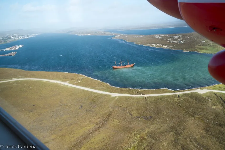 De nuevo salimos pronto, solo desayuno, una pequeña vuelta por las pinguinera y ya llega la avioneta, esta vez la vuelta es de un poco más de una hora, el día está soleado y poco aire, pero al irnos acercando a Stanley las rachas de viento aumentan y la avioneta se mueve mucho. Aterrizamos con viento de 45 nudos el límite para volar, fuimos los penúltimos en llegar, después se cerró el aeródromo. El día cambió a gris de polvo en el ambiente, nos llevan al hotel, un pequeño hotel casi en frente del puerto, solo tiene 6 habitaciones muy pequeñas pero de lujo, con una super cama pero sin vistas al canal.