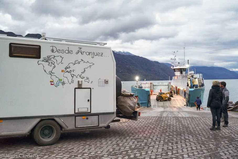 Parece que al final el viento de cara hace que el ferry llegue un poco más tarde, serán las 3 de la madrugada cuando llegamos a Tortel, dónde muchos pasajeros que no llevan auto bajan, de Tortel a Yungay en ferry hay unos 30m solamente, cómo es de noche no salimos de la Merche pero ese recorrido de día tiene que ser muy bonito. Cómo nos dijeron no se desembarca hasta que no hay luz, así pues bajamos ya sobre las 5, Puerto Yungay es nada!, Un bar y un destacamento militar, no hay nada más y casi todos los coches que venían en el ferry se van para el norte, solo quedamos allí 5 o 6, entre ellos las dos tartanas de dos parejas de chilenos muy mayores y curiosos por su aspecto y por el aspecto de las furgos hechas por ellos y muy viejas también.