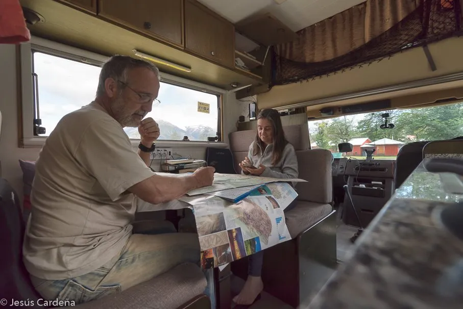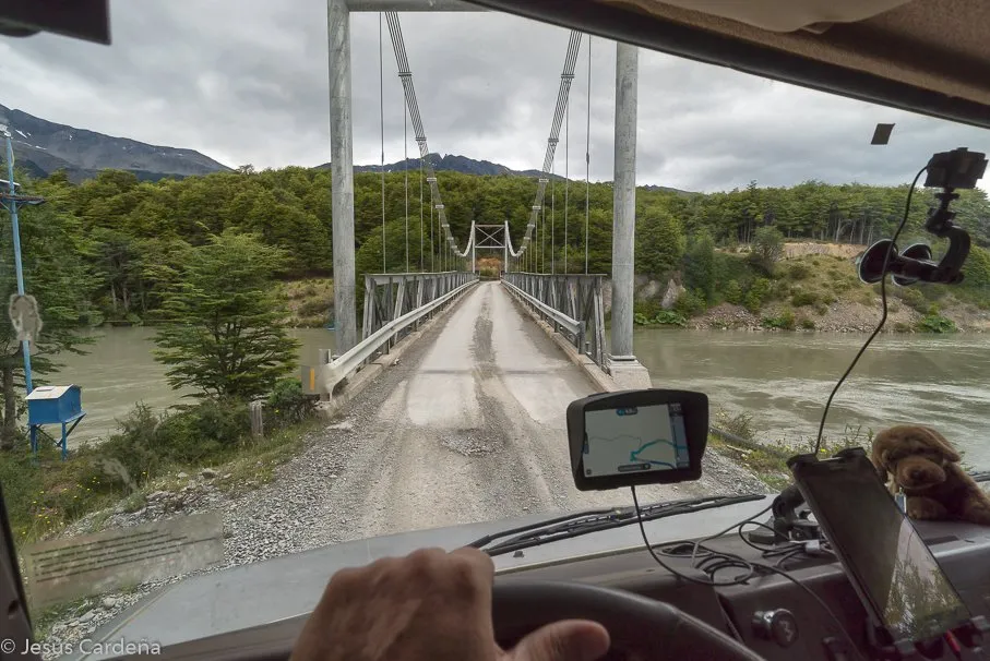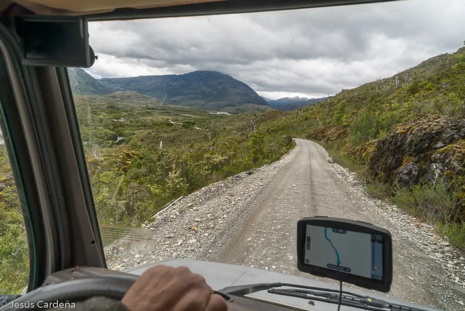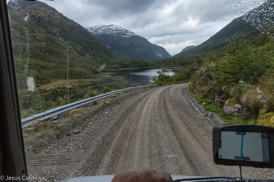 Llenamos el tanque de agua para marchar cuando vemos un chaval que se parece mucho a Pablo Iglesias (líder político de Podemos en España), Jesús se acerca a él para decírselo y en la conversación le dice que llegó ayer en autobús y que no tiene ningún plan de viaje, viaja con una mochila y una tienda de campaña, aquí le llaman carpa, y que quiere hacer dedo. Le comentamos que hoy nos vamos a acercar a final de la carretera austral, a unos 8 km al Sur y le ofrecemos venir con nosotros, él encantado y desde este momento se quedará con nosotros más de 20 días!. Claudio, chileno, resultó una buena compañía, hablador y alegre nos va dando información de Chile y de los chilenos. Nos ayudará mucho con los problemas de la Merche que a partir de aquí serán varios, muchas veces bromeando decimos que nos trae mala suerte.
