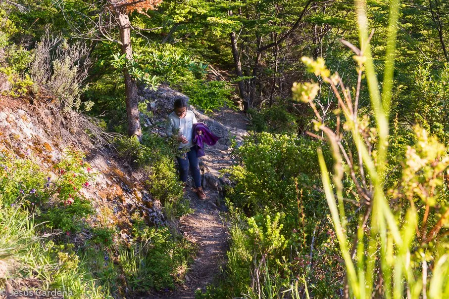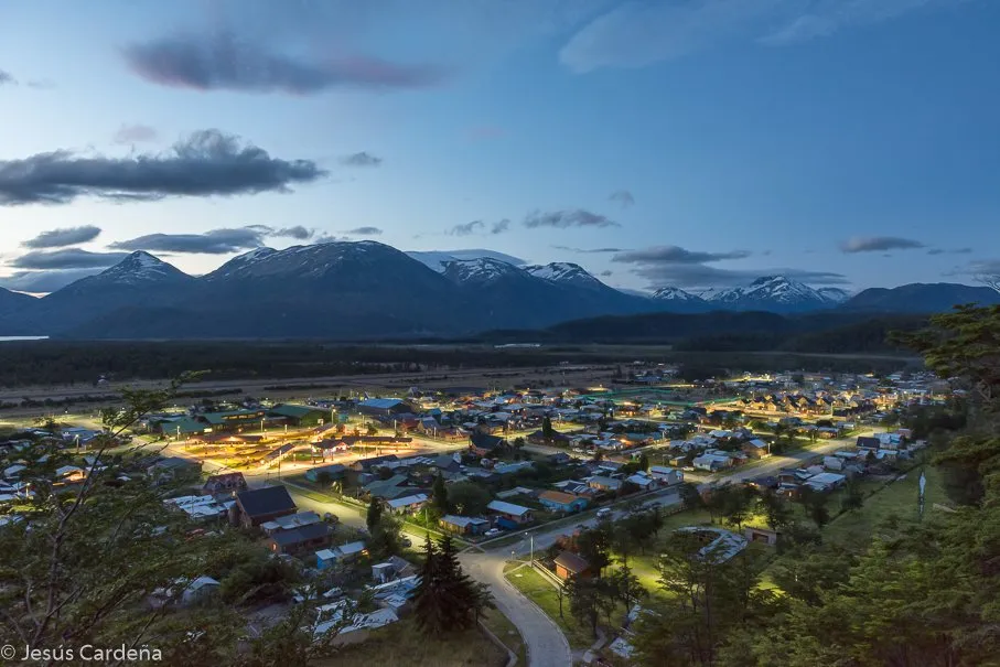 Amanece nublado pero poco a poco se despeja y quedará un día muy bueno. Por la mañana damos una vuelta por el pueblo, y hablamos con un guía que llevará mañana a pescar a Jesús. O’Higgins tiene un cerro que tiene varios senderos y unos miradores, los dejamos para última hora de la tarde para poder ver el atardecer desde arriba, al final nos animamos e intentamos subir arriba de todo, al punto denominado “la bandera” aunque no llegaremos pues comienza a desaparecer el sol y nos lo vamos a perder, nos quedamos a medio camino pero con unas vistas sobre el pueblo, lago y montañas impresionantes. Cuando llega la hora de bajar se nos hace de noche bajando!
