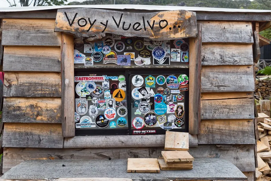 Día de carretera, paramos muchas veces a contemplar el paisaje, parece mentira pero cambiando el sentido de la marcha se ven otras cosas diferentes. Llegamos al ferry para pasar a Puerto Yungay, dónde esperamos un rato. Pasamos la barca sin problemas pero hoy hace mucho más aíre. Desde Yungay a Tortel por mar son solo 30 m, por carretera son más de 60 kilómetros. Nosotros seguimos por carretera, acompañados de Claudio, los primeros 20-25 hasta el desvío a Caleta es uno de los tramos más bonitos de la carretera, peligrosos por el acantilado pero precioso. Hace mucho aire y llueve, justo en el cruce al Tortel vemos a una chavala refugiada en una parada de autobús toda empapada y con la bicicleta caída en el suelo, nos hace una señal y paramos, parece muy cansada y está mojada y helada, Jesús sin pensarlo dos veces sube las maletas y la bici arriba y la ayudamos a subir a la Merche. Es alemana pero habla muy bien español, está agotada, el estado de la pista, el agua y el viento la han castigado mucho. La acercamos hasta Caleta Tortel, casi 40km, muy agradecida y ya un poco más caliente se va por sus propios pies al camping.