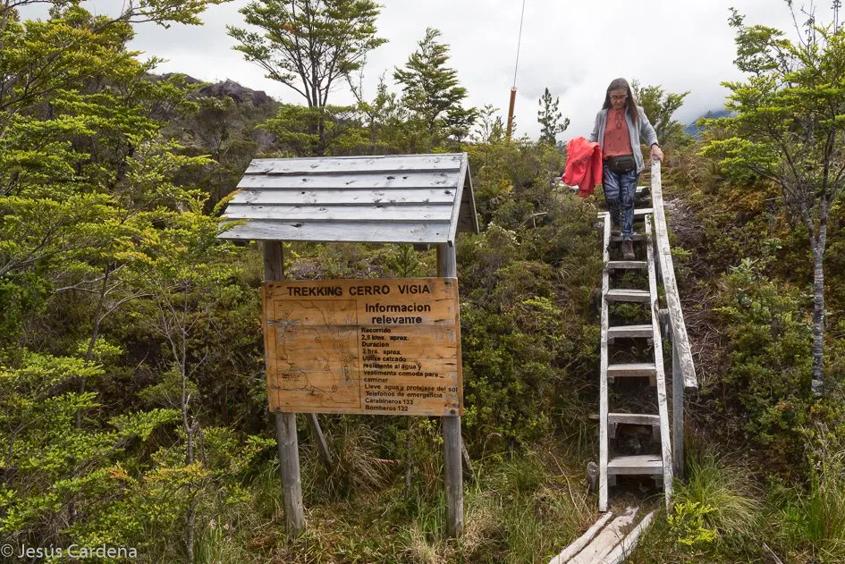 Hoy amanece lloviendo, poco pero constante, a pesar de ello queremos volver al pueblo a recorrer la parte que nos queda, está vez bajamos por el otro lado y andamos hacia la izquierda que es la parte que no vimos ayer pero nos damos cuenta que nos quedaba muy poco por ver así que decidimos subir hasta los miradores de arriba, nos habían advertido en turismo que estaban muy inundados pero aún así subimos. Tras media hora de subida por escaleras de piedra y barro, algunos tramos cn tablones sobre el barro llegamos a la cima donde las vistas son muy bonitas contemplándose tanto el pueblo como la desembocadura del Baker, al fondos islas y fiordos se pierden en la lejanía. Después de pasar más de una hora llenándonos de las vistas volvemos al pueblo y aunque es tarde encontramos un sitio para comer comida típica, cazuela, que no es más que varias verduras y carne con un caldo sin mucha gracia, estos chilenos no sobresalen por su gastronomía.