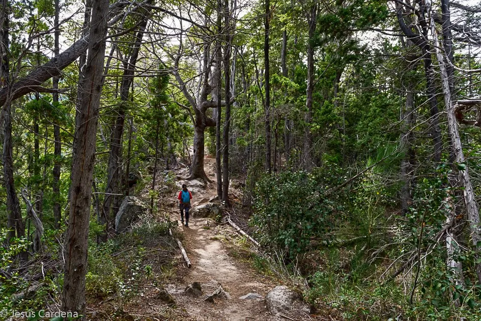 Amanece con mucha niebla, Jesús baja enseguida a tirar la caña y suerte! Una trucha arcoiris grande que nos comeremos con una ensalada. Carmen sale a buscar rosa mosqueta, ahora están los frutos para recoger y hacer mermelada. Caminando ve otro lugar muy cerca de donde estaremos mejor y es más bonito, tiene el río más cerca, Carmen encuentra una pasarela doble en el río en una zona muy bonita, se lo enseña a Jesús. Después de comer, Jesús hace la trucha a la parrilla, nos movemos al otro lado, el río está a 8 m, se oye constantemente el agua correr. Toca corte de pelo de Jesús, Carmen ya es muy hábil con la máquina y las tijeras. Jesús vuelve a bajar a pescar sin suerte y va cayendo la tarde, en cuanto se va el sol comienza en fresquito.