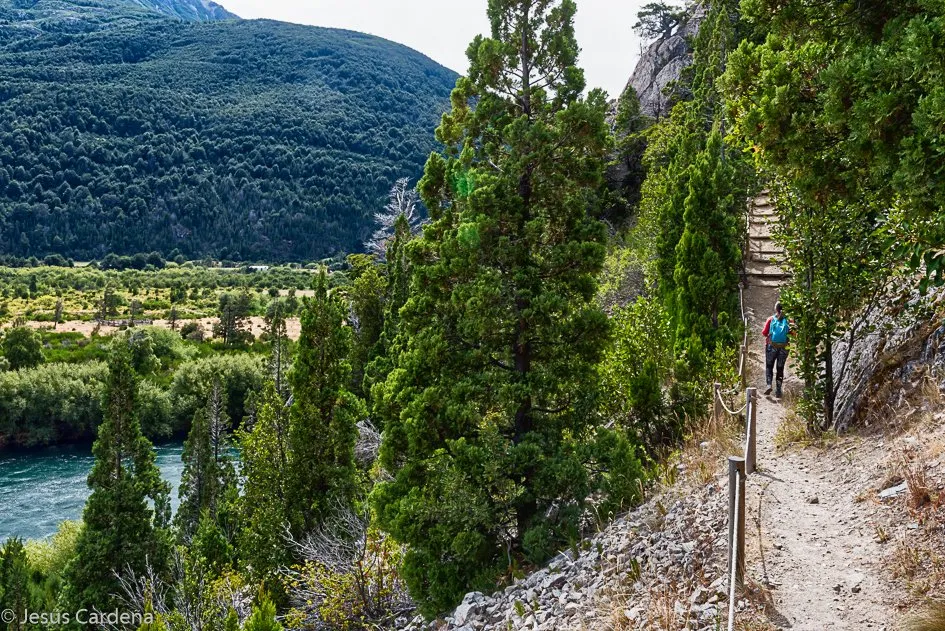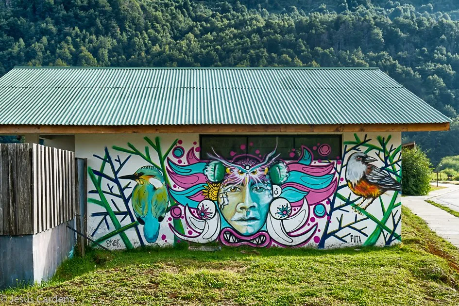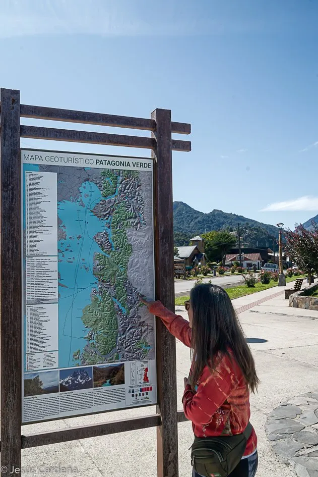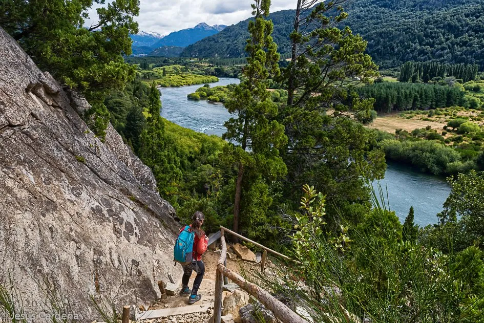 En la mañana nos acercamos al parque, después de equivocarnos varias veces, por fin llegamos a la que creíamos que era la entrada, dejamos a la Merche en un pequeño hueco en la carretera y bajamos una cuesta empinada hacia el parque, pero la entrada estaba como a 1 km todavía. La reserva nacional de Futaleufu dentro de esta región de bosque templado húmedo, tiene varios senderos que llegan a miradores a distintas alturas. Tomamos el que recorre el río hasta un mirador desde donde podemos ver el valle desde el pueblo hacia la frontera con Argentina. Paseo agradable con parada al lado del río con muchas truchas. De vuelta a Futaleufu nos volvemos a quedar al lado del lago para salir a tomar un café con la pareja y despedirnos. Ellos finalmente han decidido pasar la frontera e ir hacia el norte de Argentina. Nos hacemos una foto con la Merche con una cámara que tiene Víctor, una Polaroid Vintage