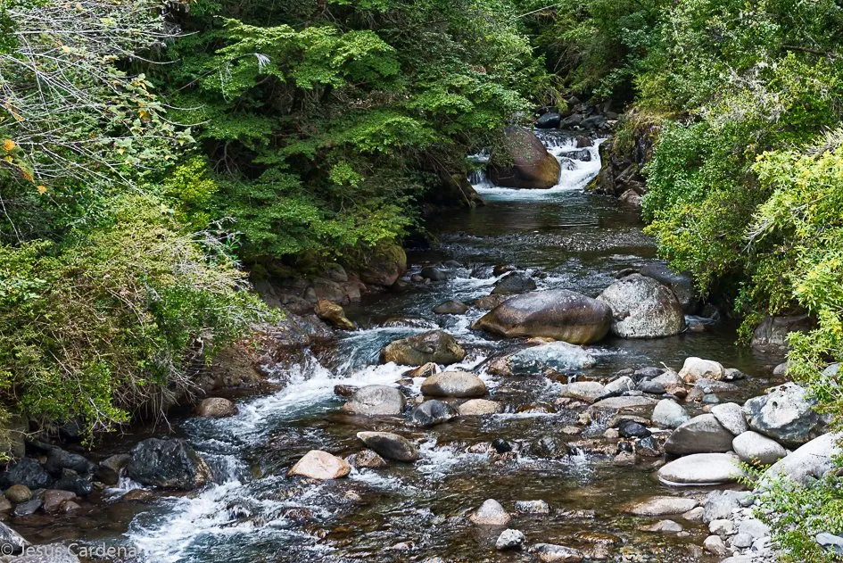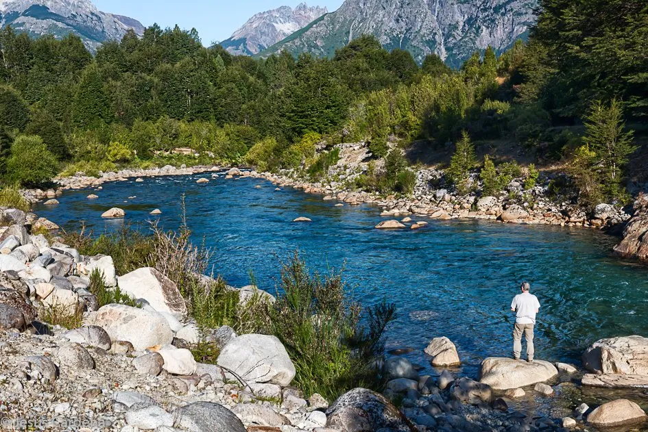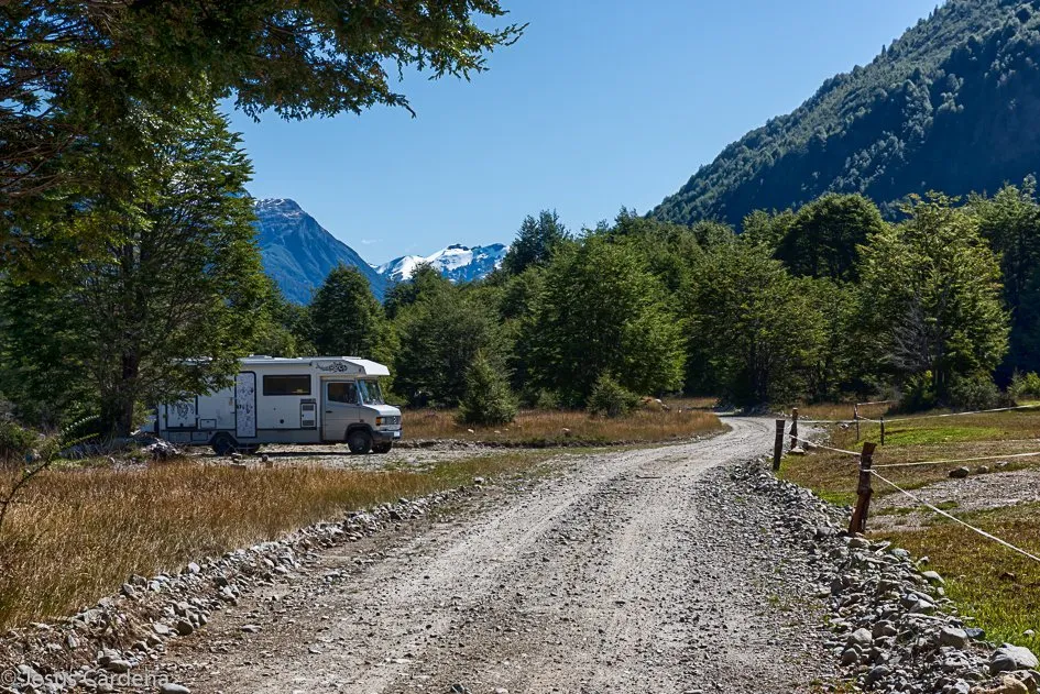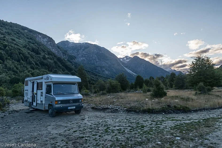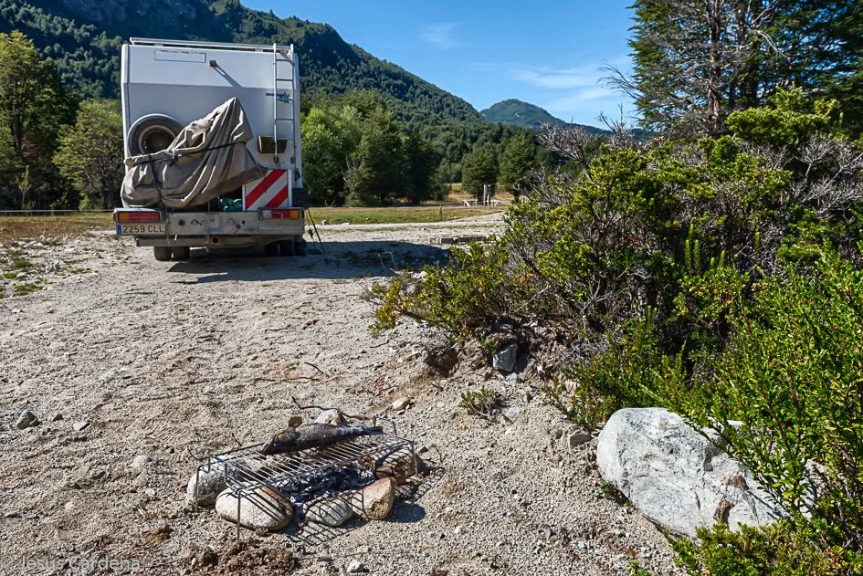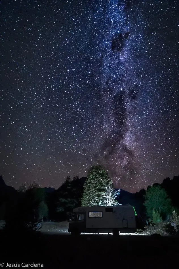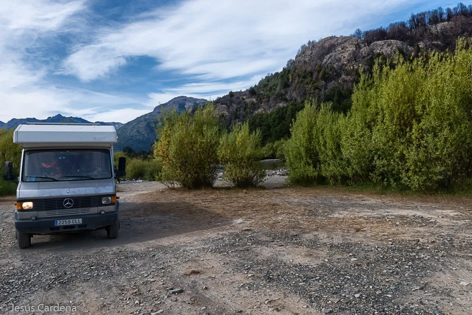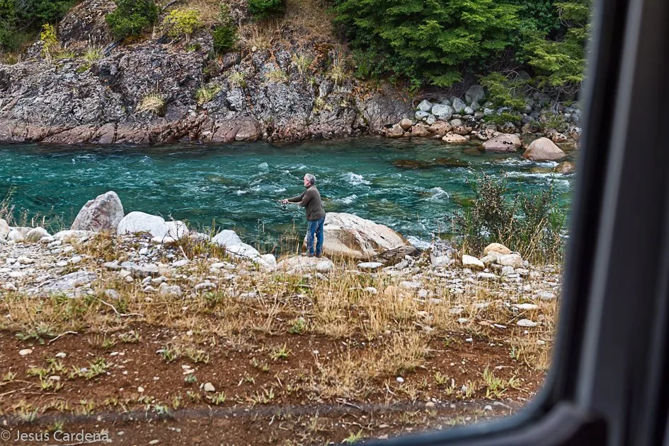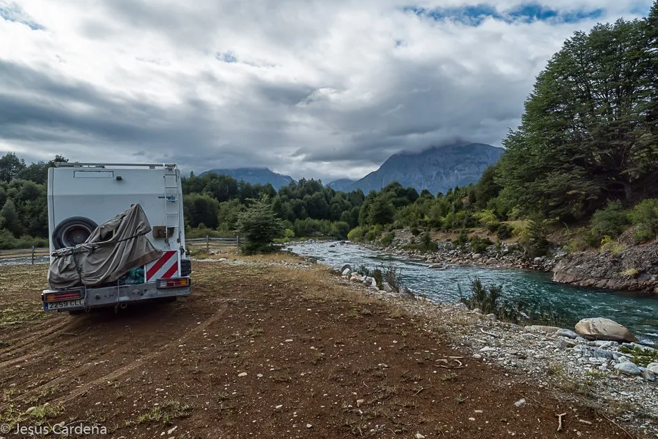 Saliendo de Futaleufu vamos a una pasarela que teníamos apuntada pero hay obras y no se puede ver así que seguimos hasta el río Azul, un punto cerca de la carretera principal marcado por el overlander, cuando llegamos nos enamoramos de lugar, una explanada con el río a un lado y vistas de las montañas. Jesús va a pescar y no tiene suerte, Carmen se da un paseo. Tendremos una noche estrellada totalmente despejado, increíble el cielo hasta que comenzó a entrar la luz de la luna.