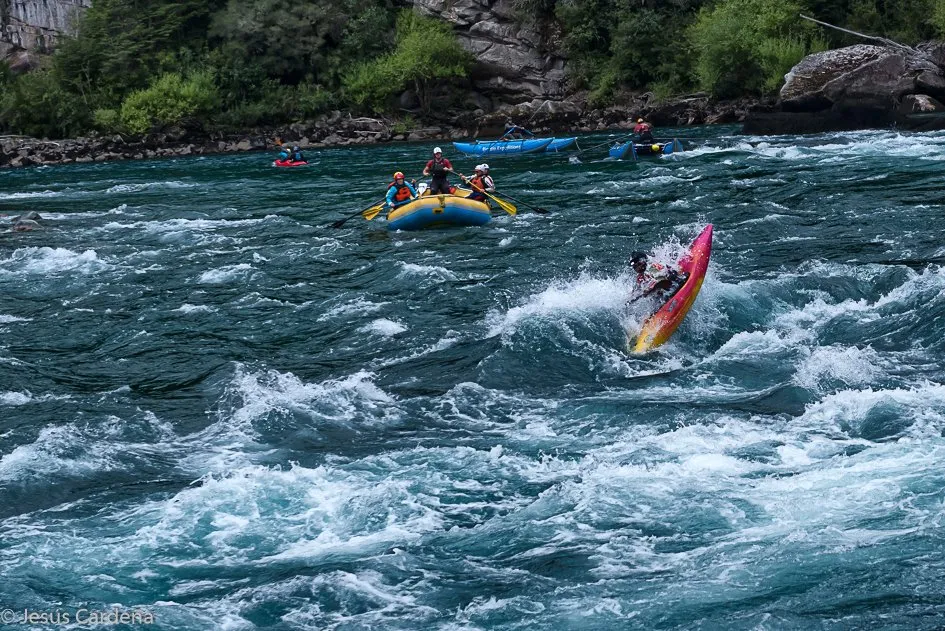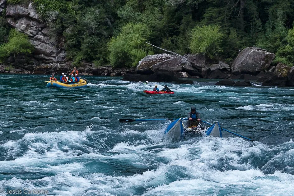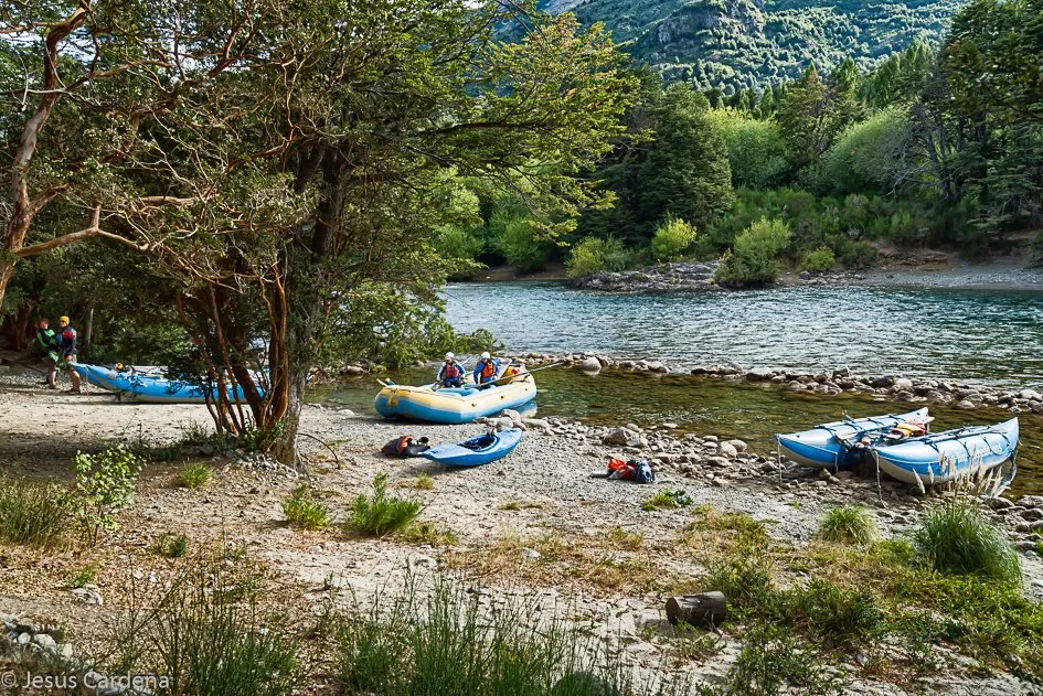 Comenzamos muy pronto a oír ruido de gente, nos levantamos y vemos que hay mucha gente preparándose para bajar por el río, se trata de una de las empresas que hacen descenso en aguas bravas de Futaleufu, uno de los mejores ríos del mundo para esta actividad.