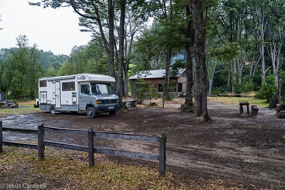 El camping está en la entrada del pueblo antes del puente sobre el río Futaleufu, a su ribera y es un lugar muy bonito, con mucha sombra, bastante caro y los servicios en la media, viejos y mal acabados.