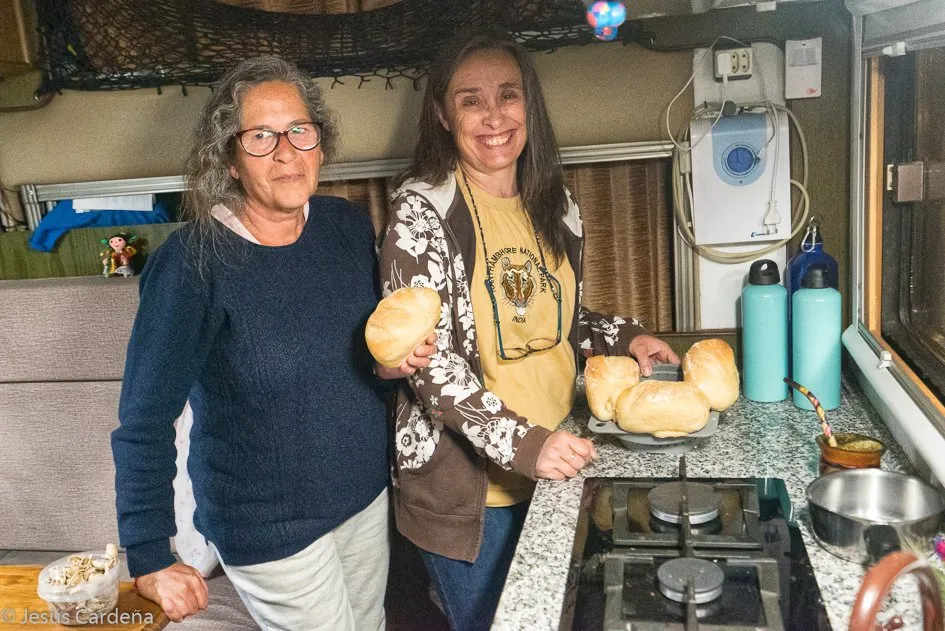 Cuando llegamos anoche nos metimos en el camping, es grande pero está lleno de agua, cómo es sábado hay bastante gente, los baños están muy limpios con unas buenas duchas. Hoy es un buen día para hacer pan ya que no tenemos y no hay ningún comercio cerca.