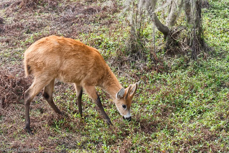 El sendero más largo se mete en la laguna con unas pasarelas, desde allí vemos varios yacaré, ciervo de los pantanos, carpinchos, y algo de gente porque es sábado y se nota. El sendero más corto es en el que se suelen ver monos aulladores, pero no tenemos suerte, es un sendero que se introduce en la sel va y rodeado de toda variedad de árboles. Total hacemos unos 10 km de paseo muy agradables.