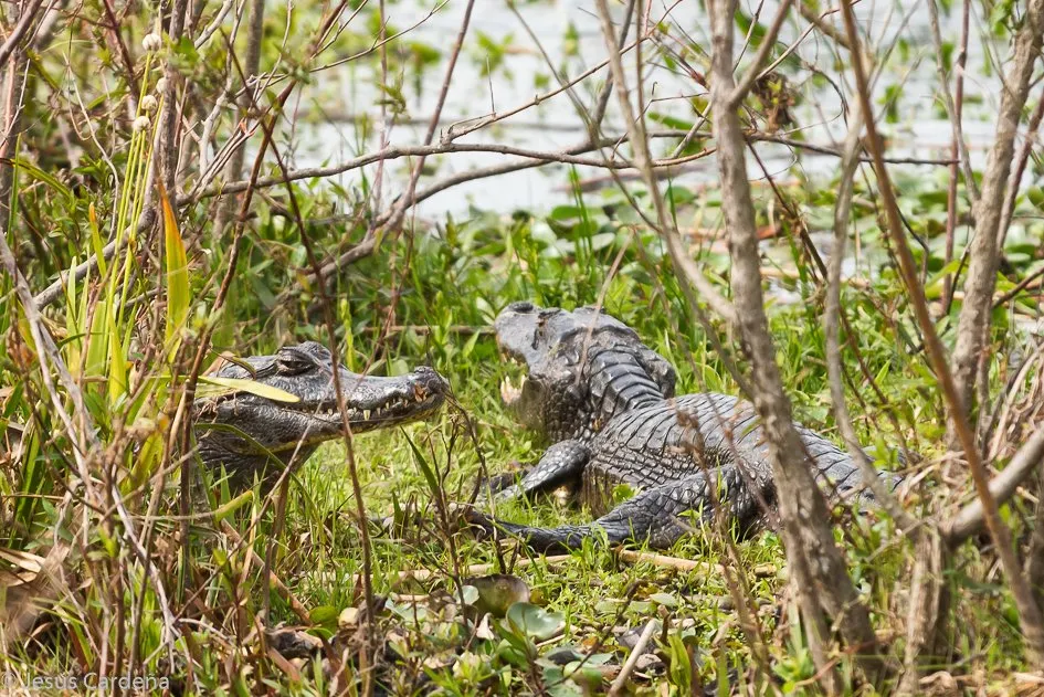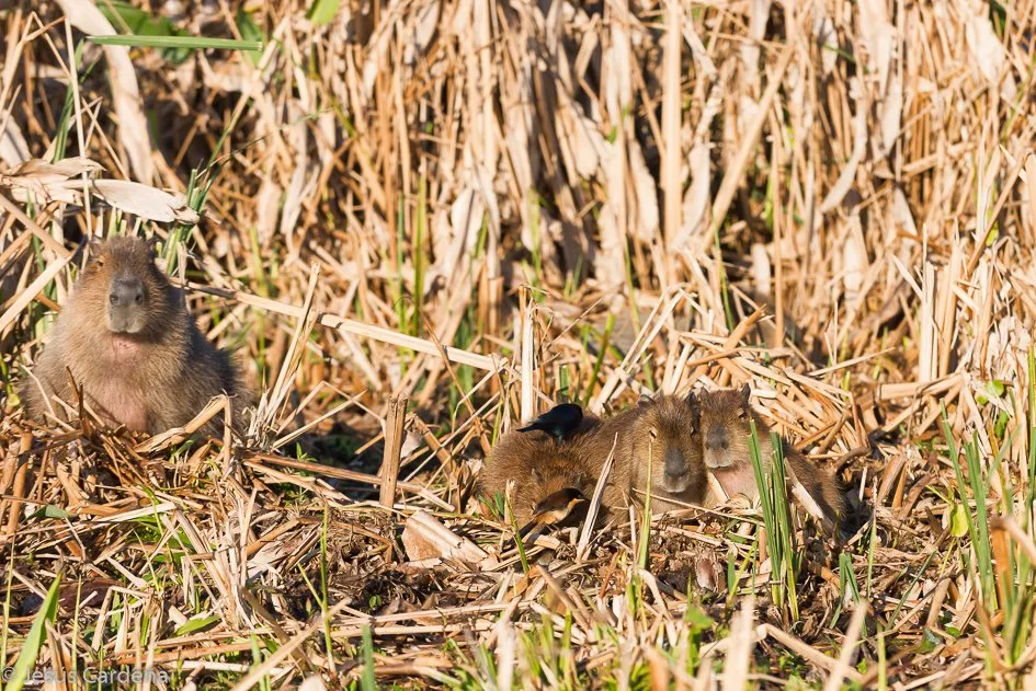 Salimos temprano, a las 8, en un paseo en barca alrededor del lago, hace frío y nos acompañan unos sudamericanos, no sabemos bien su país, que estropean un poco el paseo ya que no paran de hablar. Vemos diversas aves, yacaré, una madre carpincho y dos bebés y poco más.