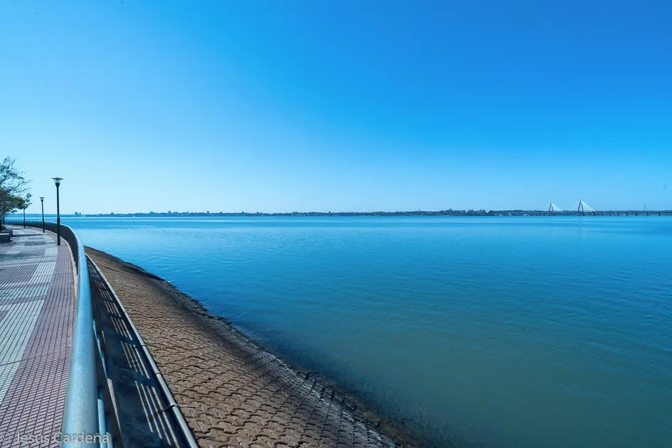 Nos despierta un gili… cortando el césped con un vehículo que hace mucho ruido y levantando un polvo de la leche. Jesús tiene que llamarle la atención y se aleja. Después del desayuno salimos hacia Posadas capital de la región de Misiones, una ciudad muy grande a orillas del río Paraná, comimos en la costanera un lugar muy arreglado para paseos, bicicleta, pesca y gente que simplemente se acercan con su coche y sus sellas de playa y se sientan mirando al río. El río impresiona por su anchura, posiblemente más de un kilómetro, y la cantidad de agua que lleva, es frontera con Paraguay.