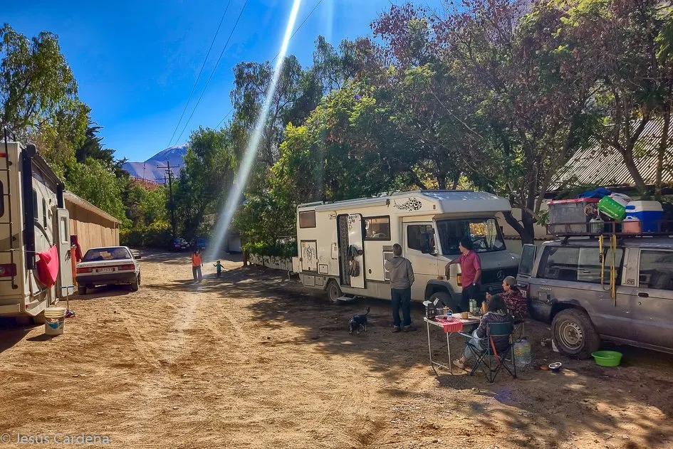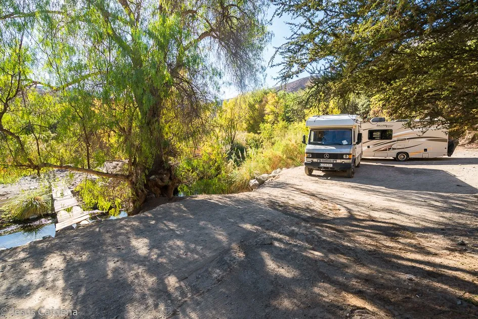 Los días comienzan a ser muy caluroso y al sol la Merche se pone a más de 30 grados. El día 485 vamos a un punto recomendado en la Apps I-overlander, a unos 8 km de Vicuña, nos gusta mucho el sitio a la rivera del Río Turbio en Diaguitas un pueblo muy pequeño y bonito.