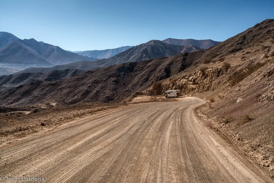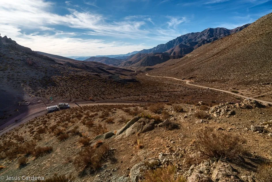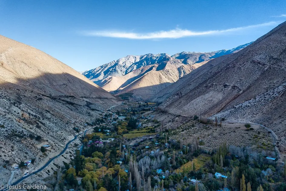Después de parar en muchos lugares para hacer fotos y esperar a los colombianos que se quedaron atrás, llegamos a Monte Grande y decidimos quedarnos allí, este pueblo si tiene río accesible y podemos llenar de agua. El día 487 Recorremos el Valle de Cochiguas hasta la población de Cochiguas donde acaba la carretera asfaltada Este valle es paralelo al Valle del Elqui.
