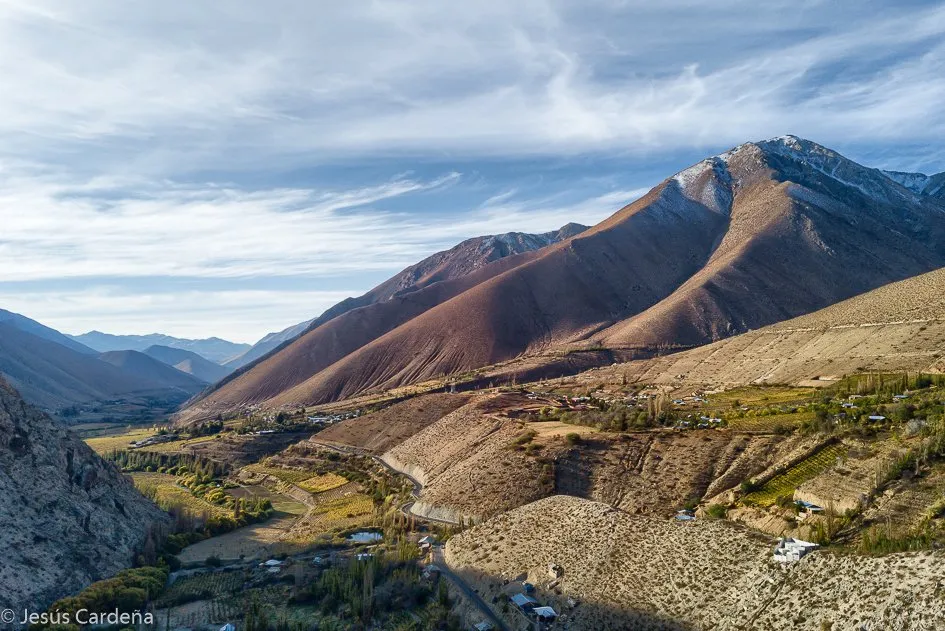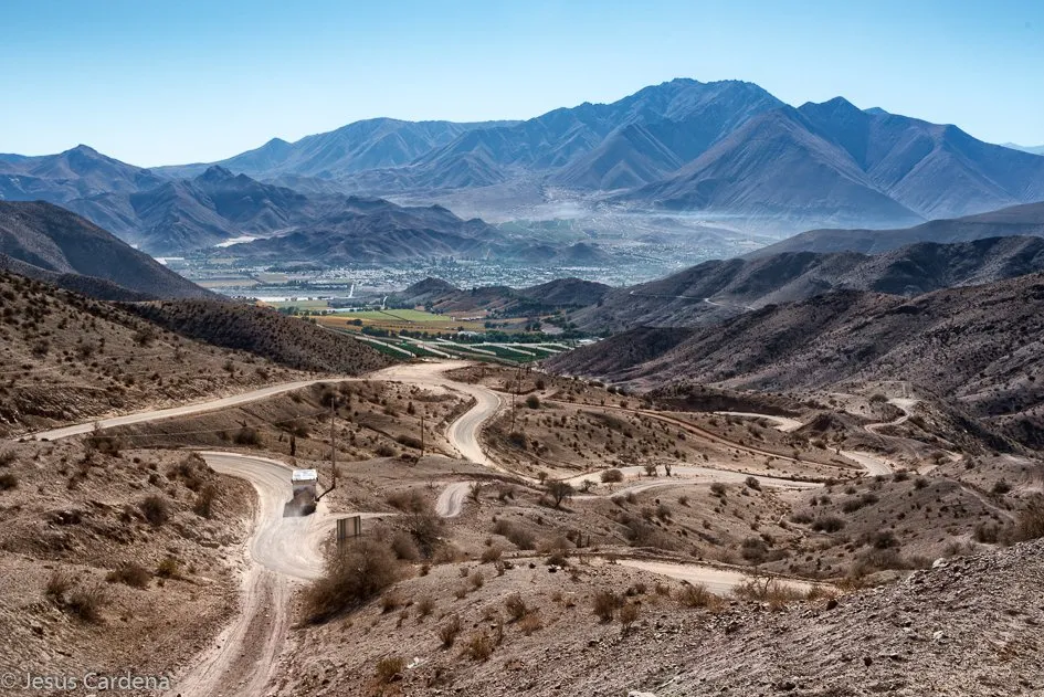 El día 486 Llegamos al valle del Elqui. Resulta ser un valle estrecho con montañas secas y resecas aprovechadas hasta bastante altura de cultivo principalmente vid pero también hay naranjos y frutales.