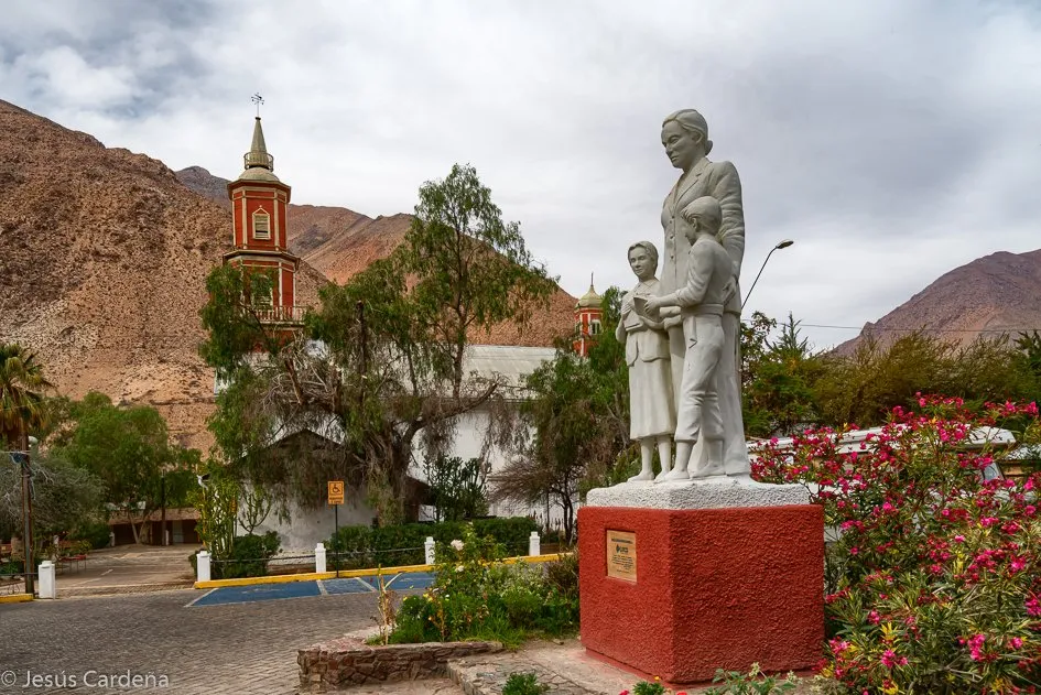 Vicuña resultó una ciudad bastante grande, no tanto como Ovalle. Aparcamos en el centro y damos una vuelta, la plaza es muy bonita. Con muchos recuerdos de Gabriela mistral, que nació. en esta ciudad.