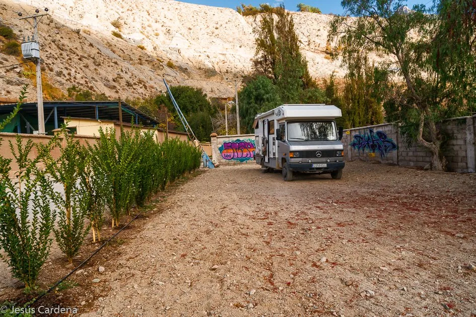 Pasamos cinco noches en este lugar junto al recinto de artesanos. Una de las veces que Jesús quiere arrancar la Merche, esta tiene la batería descargada, así que busca un taller en los alrededores que se llevan las baterías y nos las devuelven al día siguiente totalmente cargadas.