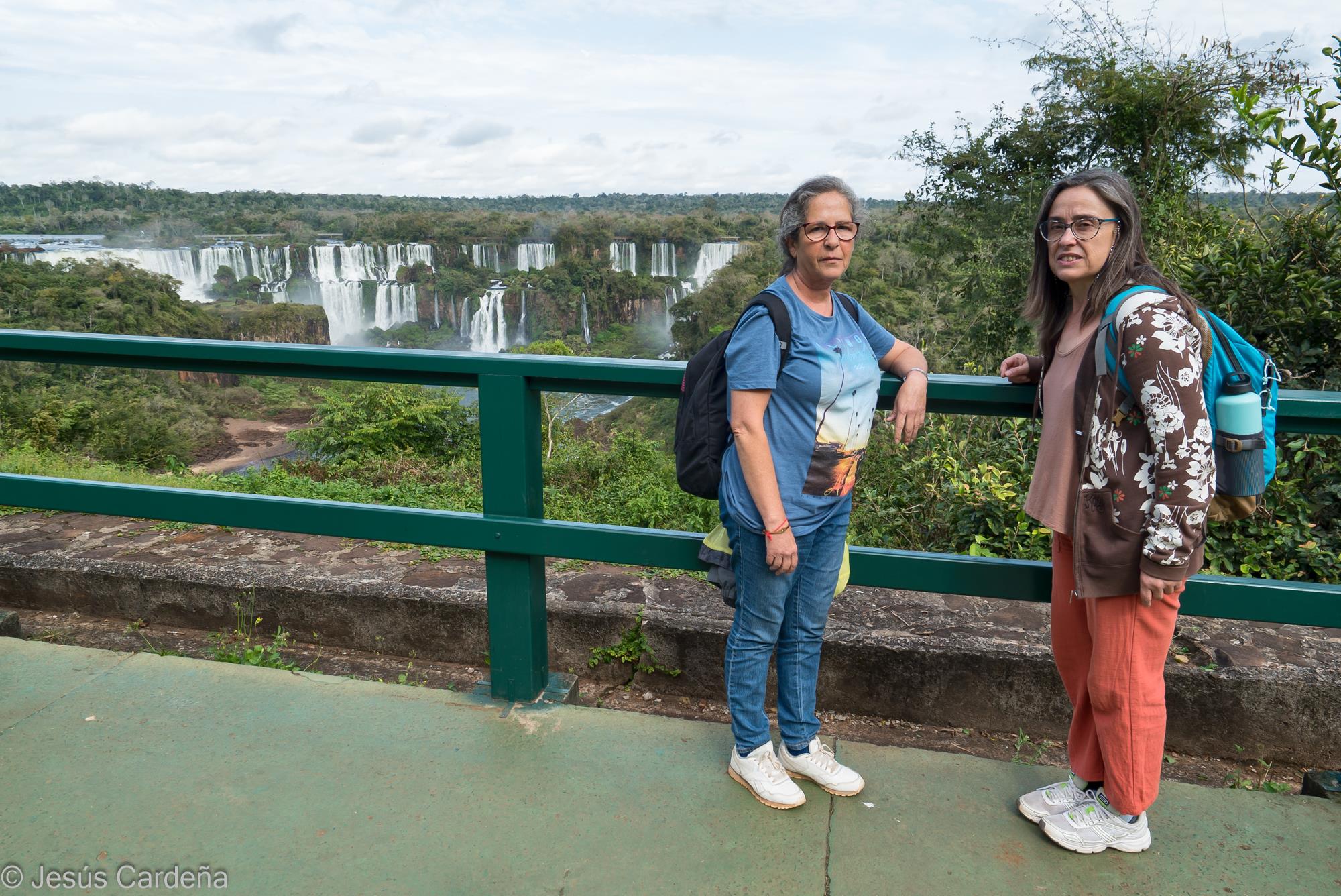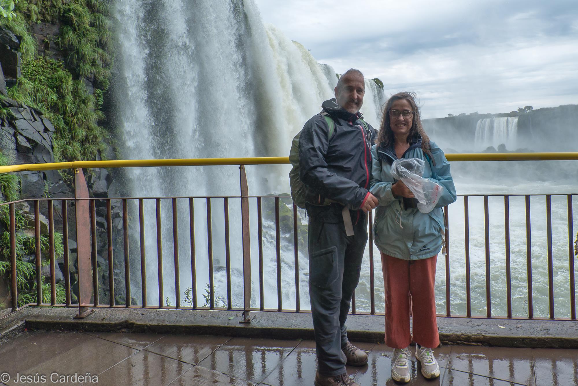 Desde el lado de Brasil, donde estamos, se ven muy bien las cataratas del lado Argentino pero lo mejor es que prácticamente las puedes tocar, estás tan cerca que acabas empapado del roció que desprenden. Advertidos de ello vamos provistos de chubasqueros.
