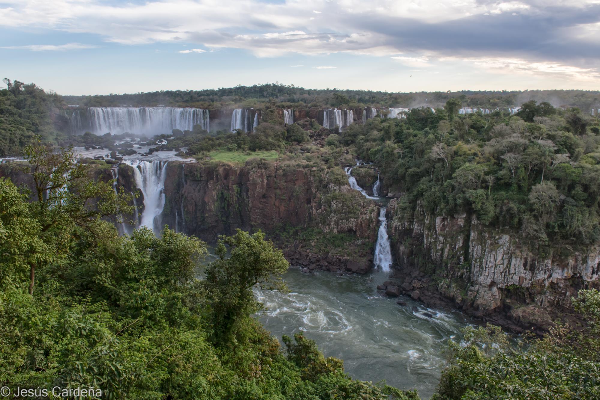 Están formadas por 275 saltos, el 80 % de ellos se ubican del lado argentino. Un espectáculo aparte es su salto de mayor caudal y, con 80 m, también el más alto: la Garganta del Diablo, el cual se puede disfrutar en toda su majestuosidad desde solo 50 m, recorriendo las pasarelas que parten desde Puerto Canoas, al que se llega utilizando el servicio de trenes ecológicos. Por este salto pasa la frontera entre ambos países. Se pueden realizar paseos en lancha bajo los saltos y caminatas por senderos apreciando algunos animales de la selva semitropical.
